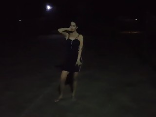 Бесстыжая тянка разделась на улице и дразнит пальчиком анус