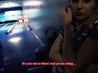 Вибратор в киске отлично скрасил поход в боулинг клуб